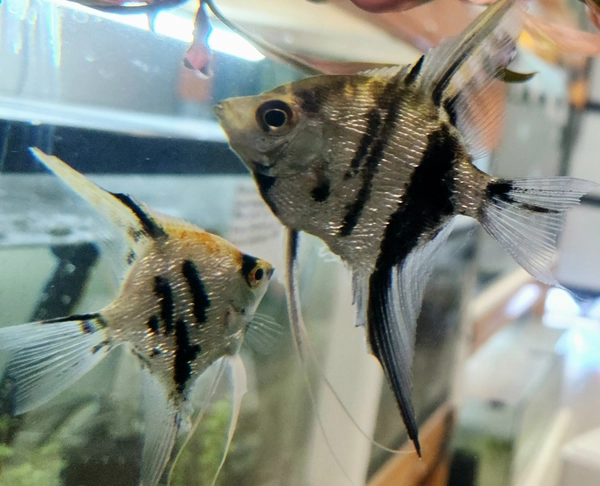 Growing up to 15 cm (6 inches) in body height and 20 cm (8 inches) including their fins, Angelfish require a medium to large aquarium with ample swimming space. Their graceful movements, striking colors, and interactive nature make them a favorite among aquarists, particularly in community or planted tanks where their beauty can truly shine.